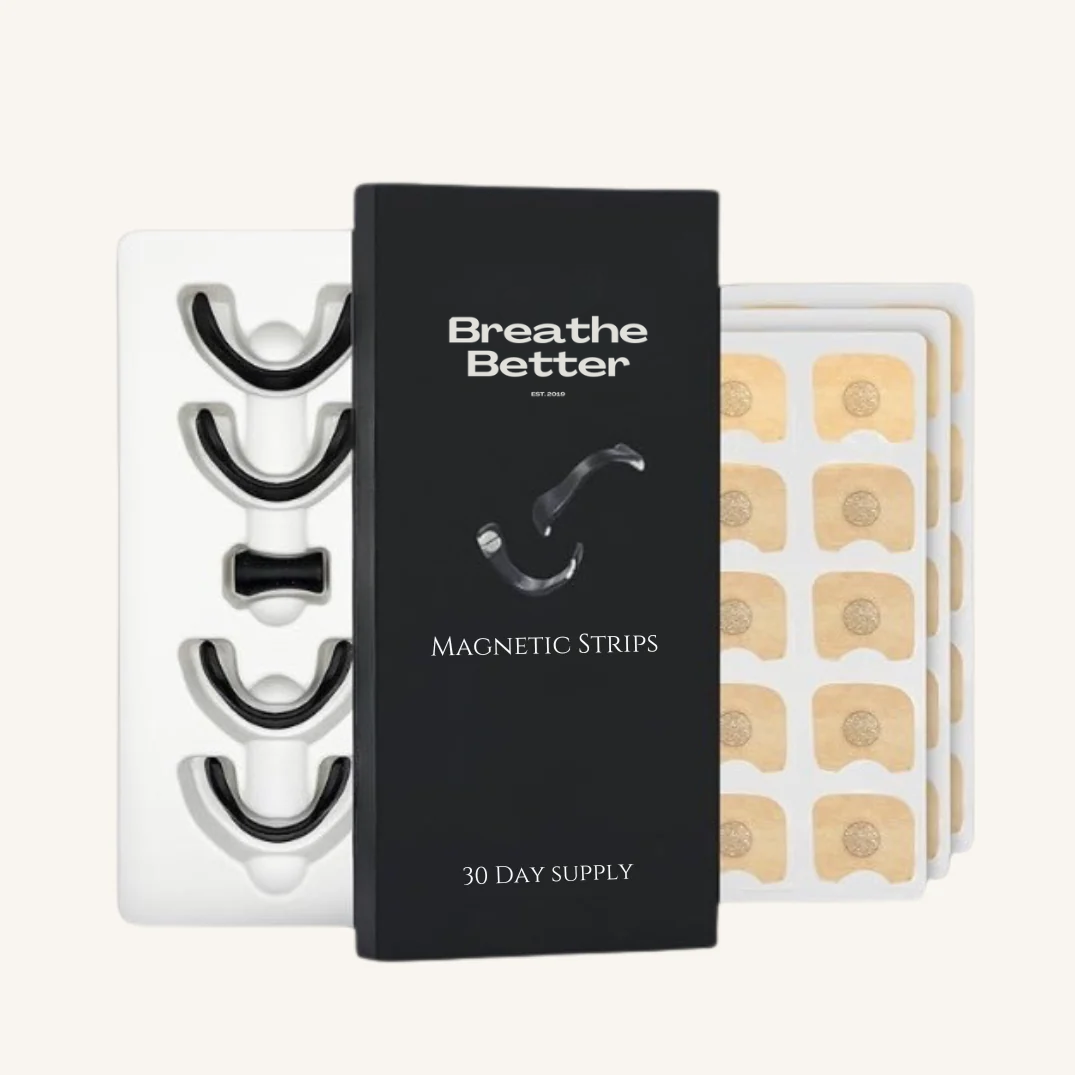 The BreatheBetter Magnetic Strips enhance your workouts, enable longer runs, promote deeper sleep and it reduces snoring. The strip uses gentle magents to gently pull open your nasal passages, improving airflow and making it easier to breathe. Our innovative technology makes this process completely safe and efficient, with a quick and pain-free application and removal process.